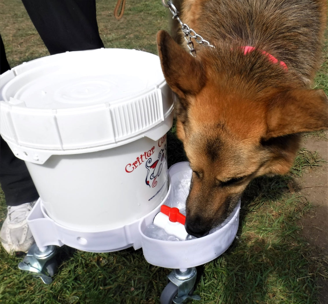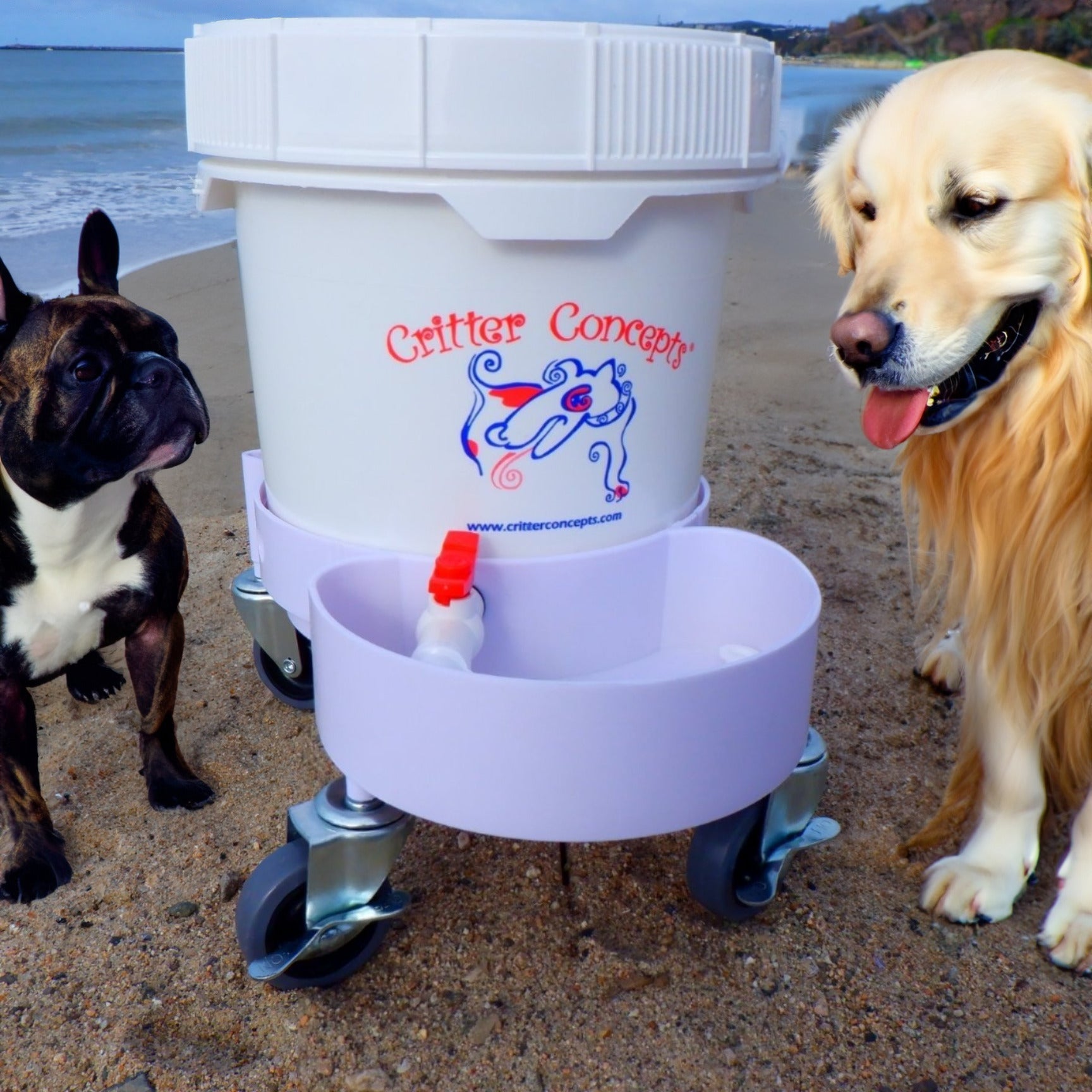 Our Critter Coolers with 3-inch locking wheels make mobility easy, even for our 6.5-gallon model weighing 55 lbs.full. Keep your dog's water bowl clean with elevated bowls and convenient drain plugs. No more waiting for the reservoir to empty—just drain, refresh, and ensure clean water without waste.